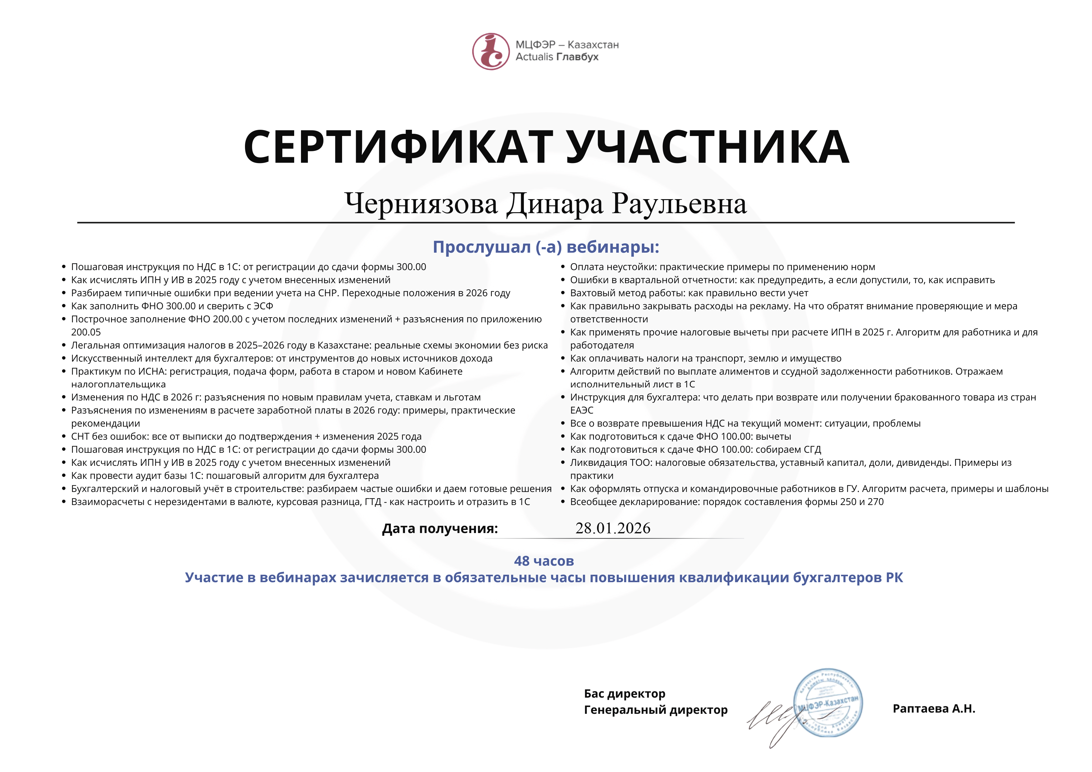 Сертификат от Атамекен